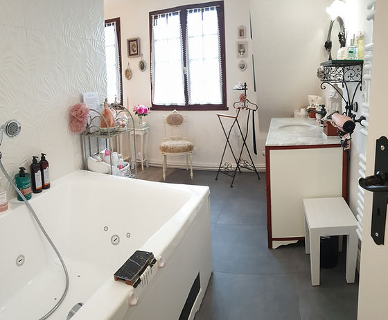 Chambre ouvrant sur la salle de bains douche/baignoire balnéo duo et wc séparés