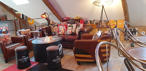 A l'étage, un espace dédié vous transporte dans les années 50-60 dans l'esprit de la route 66.